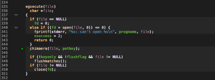 A green arrow indicator will show you what line you are on in the source code at any given point. If you are at a function call that can be entered, another small green indicator will appear underneath the accessible function.